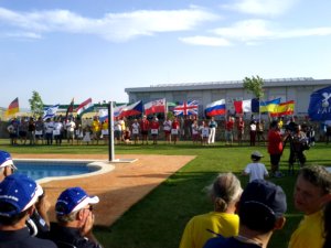 Cérémonie d'ouverture des championnats du monde le 11/08 au soir: chaque équipe en tenue, 12 nations, fanfare, beaux discours en castillan, parachutiste, patrouille, champion d'aero modélisme, et apéritif géant. Hum, mais à 22H, nous avons briefing à propos de l'épreuve du 12/08 07H !! En voiture...