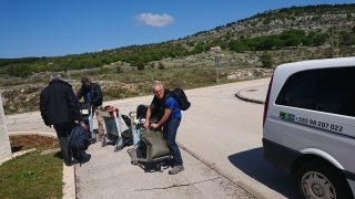 2 mai 2019 : excellente météo. Téléphone à la CAA Albanaise, accord pour nous poser, petit déjeuner à la résidence Daniela, Taxi qui nous laisse charger 120 litres d'essence dans nos outres, remise sur la taxe d'aéroport de Braç, douane, plan de vol qui traverse 3 pays : let's go, nous décollons à midi.